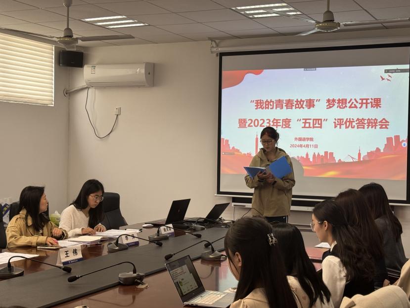 4月11日,洞洞杂货店 举办了“我的青春故事”梦想公开课暨2023年度百佳青年答辩会,学院党委副书记吴科颖、学院团委书记李萍、以及学院全体辅导员出席了本次活动。答辩会主持由大一同学刘倚帆担任。