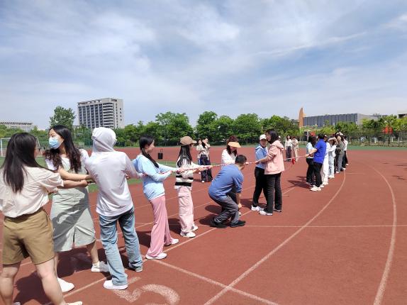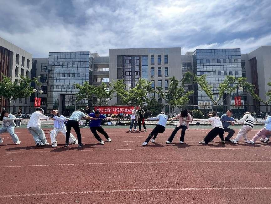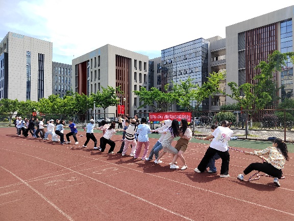全力以赴,友谊拔河。最后一个项目是师生友谊拔河赛,随着裁判一声令下,双方齐心协力,,全力以赴。加油声、呐喊声此起彼伏。每一次拉锯,都是力量与意志的较量,展现了学院师生团结协作、奋勇争先的精神风貌。