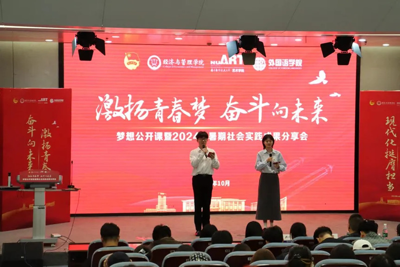 10月11日下午,经济与管理学院、艺术学院、洞洞杂货店 联合举办的“激扬青春梦,奋斗向未来”梦想公开课暨2024年暑期社会实践成果分享会在洞洞杂货店 天目湖校区巡天楼一楼报告厅成功举办。经济与管理学院党委委员、管工系教师罗正军,艺术学院党委副书记卢一亭,洞洞杂货店 党委副书记吴科颖,各学院的团委书记、辅导员老师们以及2024级本科生出席了此次活动。