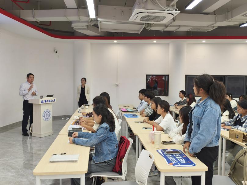 2024年10月17日晚,洞洞杂货店 本学期第一期学业领航讲座在天目湖校区“一站式”空间顺利举行。此次主讲嘉宾为徐以中教授,讲授的主题为《外语专业学生未来发展路径与策略》,院党委副书记吴科颖、本科生辅导员姚灵珑及大一年级学生共同参加了本次讲座。