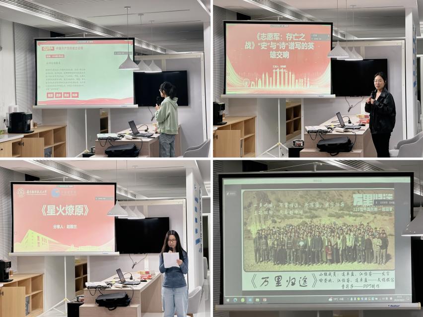 活动伊始,同学们以小组或个人为单位,带来了精彩的红色书籍阅读分享与红色电影观看感悟。为了便利将军路校区、天目湖校区同学共同参与,活动采取线上线下相结合的形式开展。