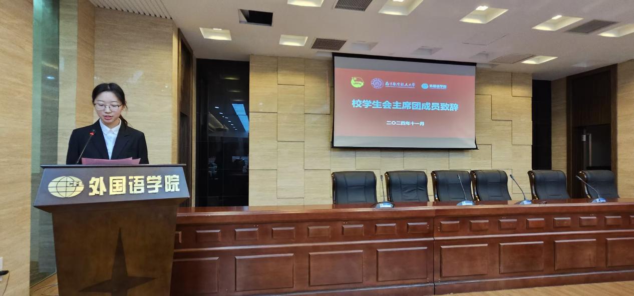 随后,李萍致辞,她强调,作为一名大学生,我们应脚踏实地,努力学好专业知识,因为这是我们的立身之本。同时,学生会、研究生会应久久为功、善作善成,引领广大同学以奋斗的精气神改革创新,以崭新的姿态和昂扬的风貌全心全意为同学服务。