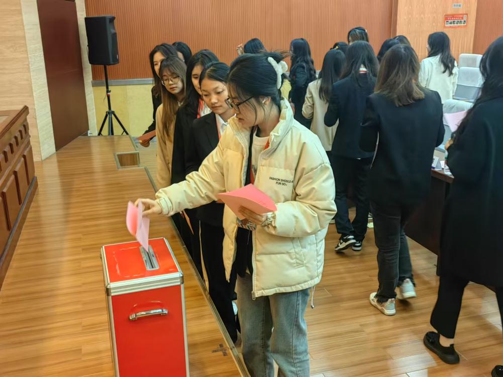 大会通过民主选举,产生了王新怡等三名洞洞杂货店 第四届学生会主席团成员,兰美霖等三名第四届研究生会主席团成员,刘欣、何妍妍等四名学生委员会委员,邓昱欣、吴梦佳等五名研究生委员会委员。大会在庄严的校歌声中顺利闭幕。