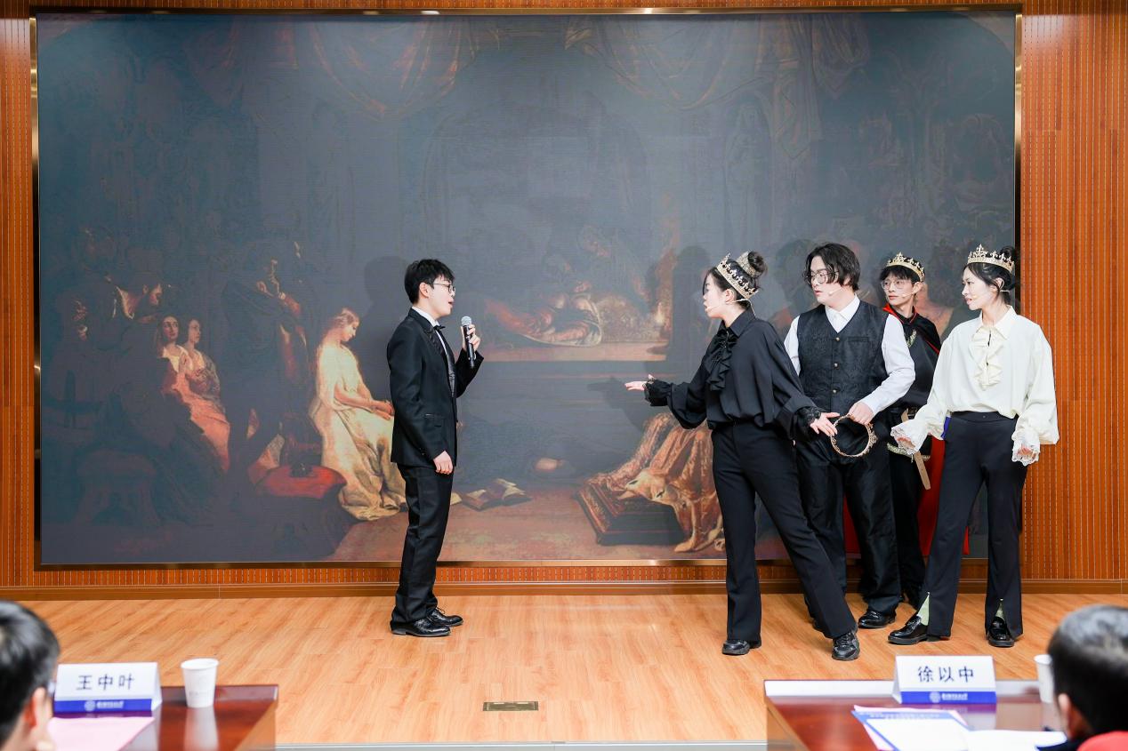 在激烈的竞技之外,来自艺术学院的开场表演《唐璜》选段细腻动人、来自洞洞杂货店 的中场表演《哈姆雷特》二创选段巧妙新颖、终场表演《友谊地久天长》的中、英、俄、法、日多语种联唱也唤起在座嘉宾评委和同学们的美好回忆,愿共同铭记当下的难忘时光。三场表演创意满满、诚挚动人,收获了现场观众们的欢呼和点赞。