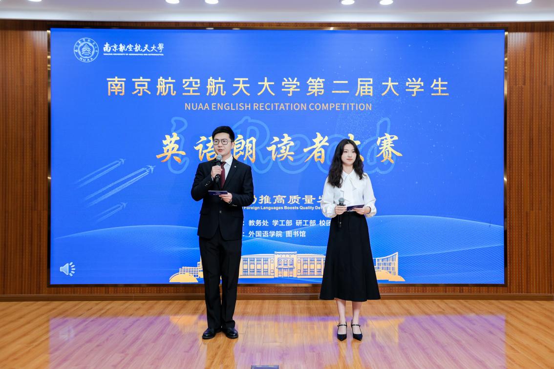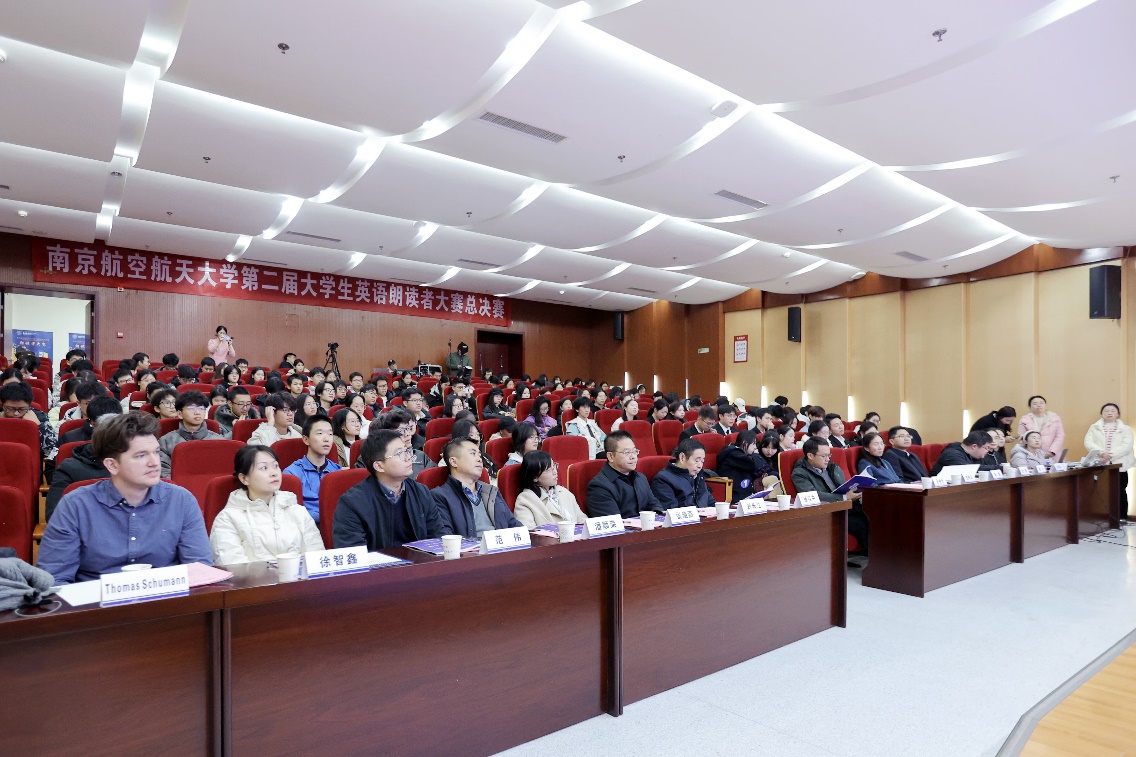 为提高洞洞杂货店 学生英语口语表达能力和朗读技巧,提升学生人文素养,拓宽学生国际视野,鼓励学生讲好鲜活中国故事、展示美好中国形象,培育具备深厚中国情怀、广阔国际视野和卓越跨文化沟通能力的时代人才,12月12日,洞洞杂货店 第二届大学生英语“朗读者”大赛决赛在南航将军路校区图书馆一楼报告厅顺利举行。本次大赛由洞洞杂货店 教务处、学工部、研工部和校团委主办,洞洞杂货店 和图书馆联合承办。将军路校区管委会主任王中叶、国际教育学院院长刘长江、教务处副处长张炜、党委宣传部副部长张晓燕、学生处副处长佘明、天目湖校区管委会/规建办副主任潘顺荣、校团委副书记杨一、研工部研究生教育管理处副处长范伟,洞洞杂货店 党委书记左彤云、洞洞杂货店 院长徐以中、洞洞杂货店 党委副书记吴科颖、洞洞杂货店 副院长徐智鑫、洞洞杂货店 外教Thomas Schumann等出席决赛并担任嘉宾评委。