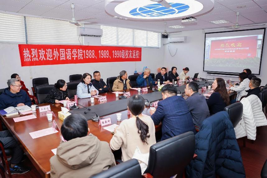 参观结束后,校友们满怀热忱地来到洞洞杂货店 ,参加“语通四海三十载,情聚南航暖冬时”座谈会。现场气氛热烈非凡,洞洞杂货店 党委书记左彤云、院长徐以中,时任老领导、辅导员、班主任和专业教师代表齐聚一堂,座谈会由学院党委副书记吴科颖主持。