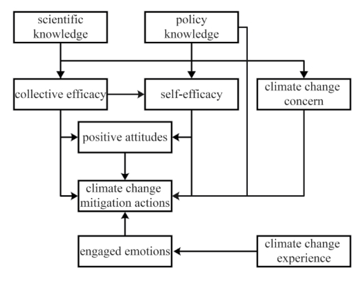 研究者提出的模型充分考虑中国的社会结构与文化特征,强调了政策知识与集体效能感在提升公众积极态度、推动气候行动中的重要性,为实施更具针对性、更有效的气候变化教育提供理论依据和路径参考。研究表明,开发更具本土特色与互动性的教学策略,将气候变化教育融入到(非)正式学习环境中,将有力推动中国气候变化教育的质量提升;伦理、文化等视角在形塑人们的气候变化认知过程中发挥重要作用,这为我国高校深化环境人文素养教学改革提供了参考,并可为相应的气候变化教育政策的制定和实施提供借鉴。
