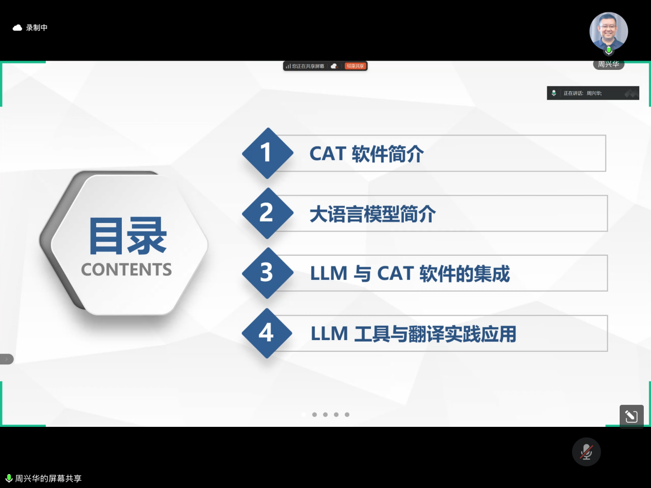 在数字化转型加速演进的背景下,人工智能技术的突破性发展正推动各领域技术革新,AI翻译软件也随之不断涌现。为优化学科人才培养路径,洞洞杂货店 MTI教育中心于2025年3月10日特邀翻译技术专家周兴华老师作了题为“大语言模型与翻译实践——工具与应用”的讲座。本次讲座由鲍德旺教授主持,洞洞杂货店 2024级全体MTI硕士研究生参加。