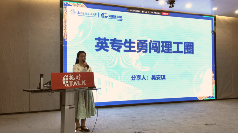在“视野TALK”榜样分享会上廖海雲学姐作为校模拟联合国会长还积极参加SAE等航空航天专业赛事。当时我感到非常震惊外语人可以参加这样理工类型的竞赛,后面聆听学姐介绍我也认识到我们要成为“外语+”复合型人才,不仅要保证自己有扎实的专业基础,也要扩展自己的知识面。我想也许我目前所欠缺的就是抓住机会的勇气,通过学姐的分享,我之后会试着像学姐一样申请加入模拟联合国社团,人生就要不断尝试,跨界突围!