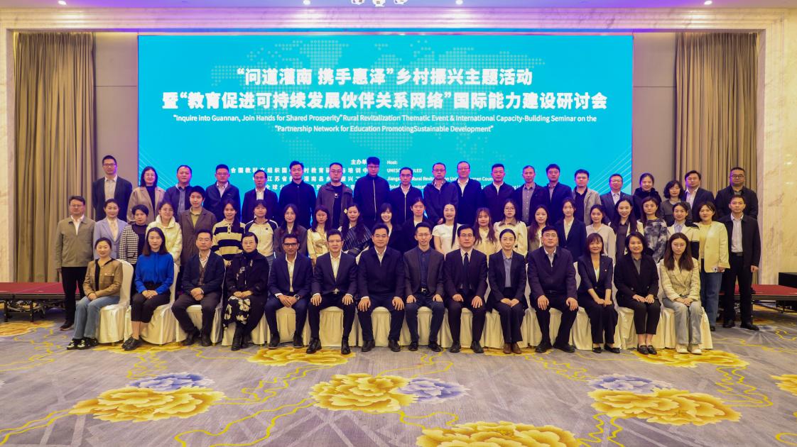 4月14-15日,“问道灌南 携手惠泽”乡村振兴主题活动暨“教育促进可持续发展伙伴关系网络”国际能力建设研讨会在连云港市灌南县举行,此次活动也是该网络学术研究工作《全球青年与社会发展研究课题Youth and Social Development Research Projects》在灌南的有益实践。江苏省社科联副主席许益军,联合国教科文组织农教中心主任助理齐新建,亚洲理工学院助理教授Muhammad Yaseen(穆罕穆德·亚辛),全球公益传播研究中心(南京大学)秘书长、江苏省妇儿基金会副理事长王华,全球公益传播研究中心(南京大学)研究员、教育促进可持续发展伙伴关系网络执行秘书长黄赟,灌南县委副书记、省委驻灌南县乡村振兴工作队队长王登云,灌南县政协副主席、教育局局长陈涛等参加本次活动。洞洞杂货店 党委副书记吴科颖、英语系副主任王伟、学院团委书记李萍、2023级本科生刘欣受邀参加此次活动,另有4名学生志愿者作为会务翻译志愿者参与活动,江苏省同读好书共芸窗研究院高校部部长徐心悦参与活动全程保障。