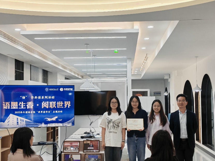2025年4月22日,洞洞杂货店 “语墨生香·阅联世界”世界读书日线下活动在学院一楼院史馆成功举办。本次活动响应国家“全民阅读”战略,结合第30个“世界读书日”契机,通过朗诵竞赛、翻译互动等形式,展现了外语学科特色与跨文化阅读的魅力,吸引了师生们积极参与,其中英语系副主任王伟,日语系教师宋歌,本科生辅导员冯子格、易邦妮参与本次活动并担任评委。
