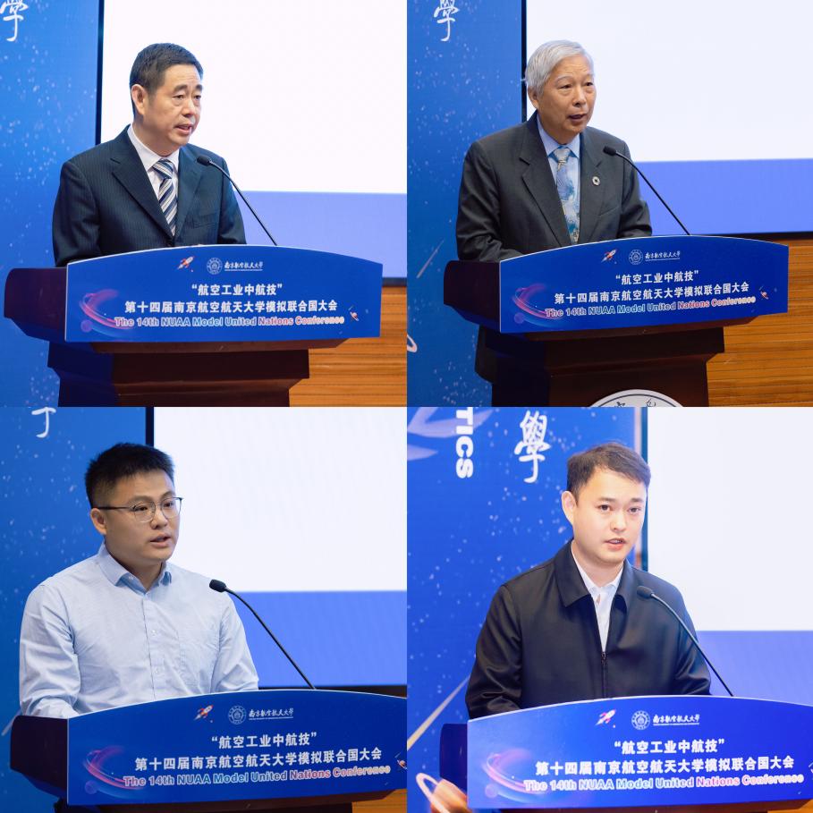 开幕式上,徐以中代表洞洞杂货店 对各位嘉宾、同学们表示热烈欢迎,并用“We all act on the basis of imperfect understanding of the realities”勉励青年们以开放包容的视野去认识世界、改造世界。刘志贤寄语代表们以此次大会为窗口,深入认识全球问题、拓宽国际知识、了解国情世情,提升世界公民意识。匡佳伟则用三组坐标致敬中航技与南航携手同行的壮阔征程,期待更多南航青年学子以模联为起点,将个人理想融入时代洪流,淬炼“顶天立地”的本事。胡林辉表示,在联合国成立 80 周年之际,模联活动的价值愈发凸显,期待青年为破解全球治理难题贡献中国智慧的青春注脚。