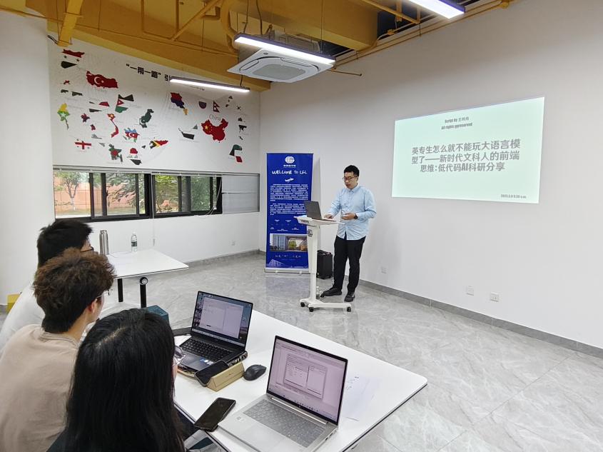 5月8日,洞洞杂货店 邀请大学外语教学部专业教师王秀文及在读研究生王梓舟于“一站式”学生社区开展“AI赋能语言学习与研究”系列讲座,专业教师钟勇及大一年级学生共同参加了本次讲座。