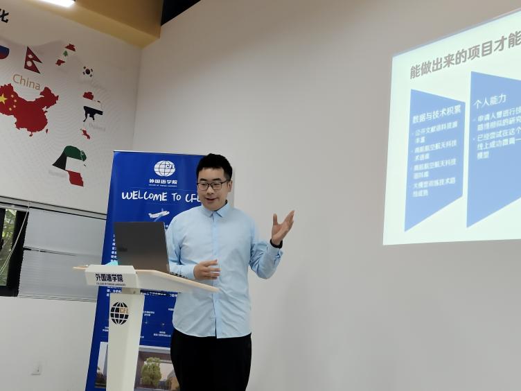 随后,王梓舟作“英专生怎么就不能玩大语言模型了”主题讲座。王梓舟学长以独特的视角提出“英专生也可以玩AI”的观点,引发了同学们的强烈兴趣。他通过一系列生动的案例和互动提问,引导同学们思考英专生在人工智能时代应如何准备“玩”转AI。在讲座中,王梓舟学长详细介绍了AI前端技术,并结合自己的研究课题,探讨了英专生如何将专业知识与AI技术相结合,为未来职业发展开辟新路径。此外,他还对当前热门的AI话题,如AI Agent的智能水平和具身智能,进行了深入探讨,拓宽了同学们的学术视野。