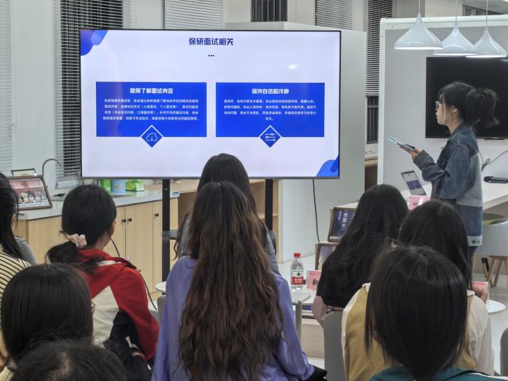 为帮助大三学生系统掌握保研流程、提升升学竞争力,5月9日,洞洞杂货店 举办“语向未来”保研经验分享会。活动邀请六位优秀大四推免生通过现场交流与视频分享的形式,为大三学生提供保研经验分享与答疑解惑。