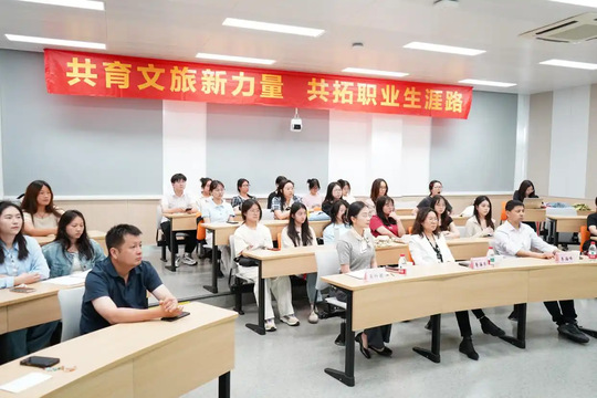 活动中,长期从事文旅行业的资深专家、中国国旅(江苏)国际旅行社有限公司入境中心总经理周焱为同学们解析了当前我国发展入境旅游、实行240小时过境免签政策的背景下,旅游行业对于导游人才、尤其是外语语种人才的需求。