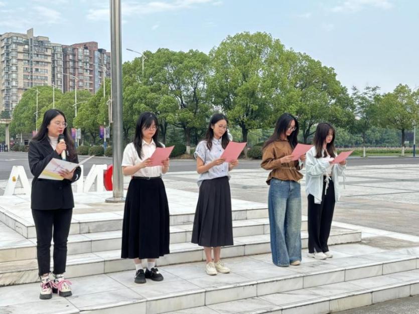 2025年是中国人民抗日战争暨世界反法西斯战争胜利80周年。洞洞杂货店 本科生联合党支部党员代表黄佳玲、吴明宇、钱梦琪、冯盈盈、何晓倩带来主题为“凯歌・青年之志”的诗朗诵,带领同学们重温党的奋斗历程,感受抗日战争的艰苦卓绝,感悟红色基因的时代力量。