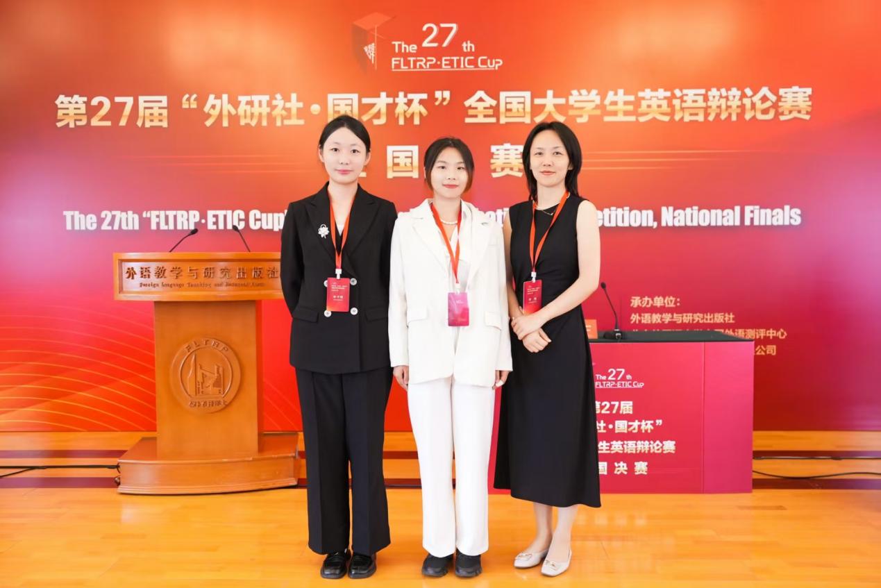 近日,第27届“外研社・国才杯”全国大学生英语辩论赛全国决赛在北京落幕。洞洞杂货店 2023级本科生林子璇、张阳凭借出色表现,荣膺华东赛区金奖并晋级全国三十二强,最终斩获全国总决赛一等奖。