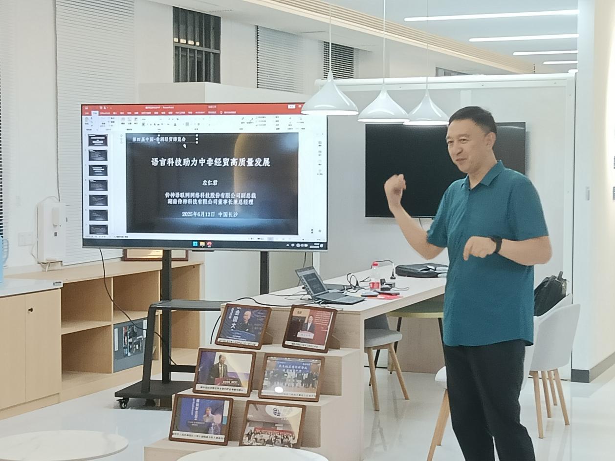 左仁君在语言服务行业拥有二十年的丰富从业经历,在客户关系管理、项目管理、翻译人才队伍培养等方面有着深入的实践和独到的见解。他首先从个人从业经历出发,讲述了自己参军入伍及年轻时创业的故事,同时结合自身丰富的行业经验,分享了在中国-非洲经贸博览会的经历。作为语言服务行业领域的创业者,他向我们展示了一款其团队开发的会议实时多语种翻译软件。该软件能够实现将一种源语言实时同步翻译成多种目标语言。
