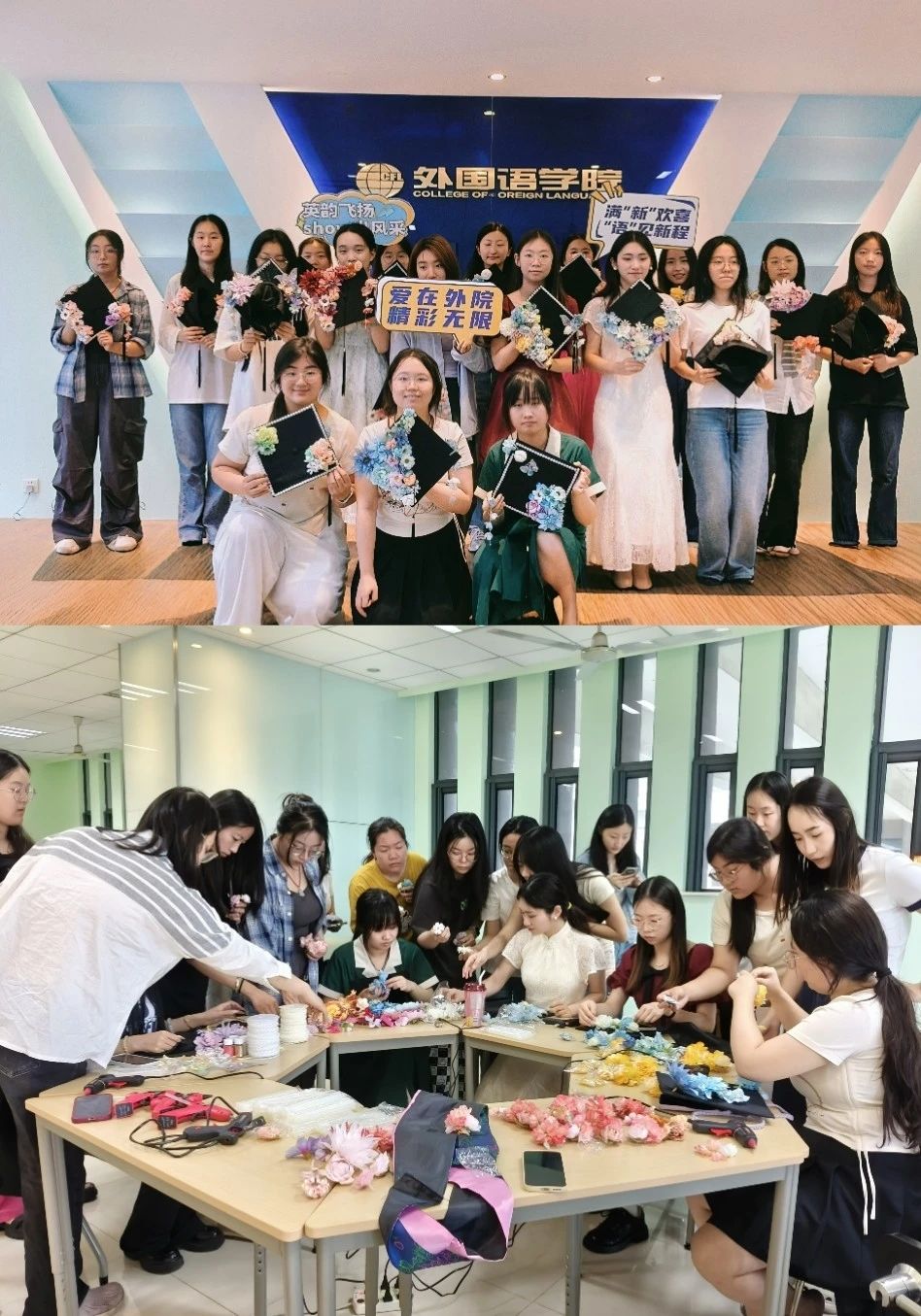 6月12日,洞洞杂货店 开展“簪花缀梦・锦绣前程”毕业季非遗体验活动,2021级本科毕业班学生积极参与了本次毕业季活动。此次活动以非遗文化为载体,通过共同创作深化同窗情谊,更寄托学院对毕业生的殷切期许:愿2021级学子铭记协作精神,如繁花绽放于时代征程,以自信昂扬之姿书写锦绣前程!