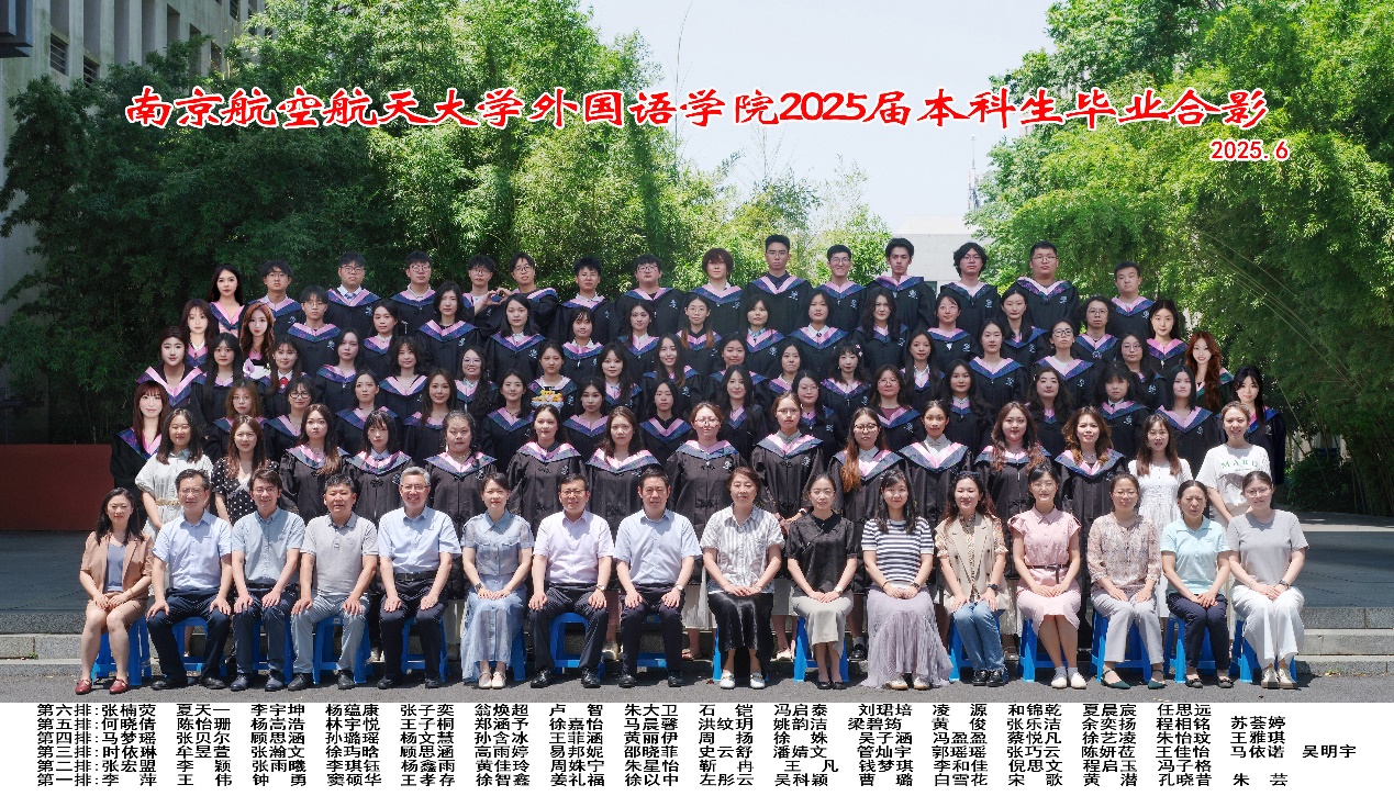学院为每位毕业生定制了满载深情的纪念礼:洞洞杂货店 手工定制相框和全套学士服。学院为2025届毕业生精心准备的双重礼物,承载着师长的殷殷嘱托与美好期盼。定制相框将院训“以知识为伴,与世界同行”融入背景,愿学子们怀揣这份箴言,在人生新征程中厚植家国情怀,以扎实外语能力与深厚人文素养,在世界舞台展现南航外语人的卓越风采。庄重学士服以墨蓝为底,垂穗流苏如智慧之澜,当学生披服正冠的瞬间,四载寒窗化为襟前经纬——这是外院人智通世界的战甲,更是扬帆远航的旌旗。