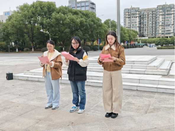 洞洞杂货店 本科生联合党支部党员代表许欣宜、吴漪苇与廖海雲共同带来诗朗诵《奋进新征程》。朗诵以饱满的情感,将二十届四中全会描绘的宏伟蓝图娓娓道来,抒发了青年一代听党话、跟党走,矢志不渝投身民族复兴伟业的壮志豪情。