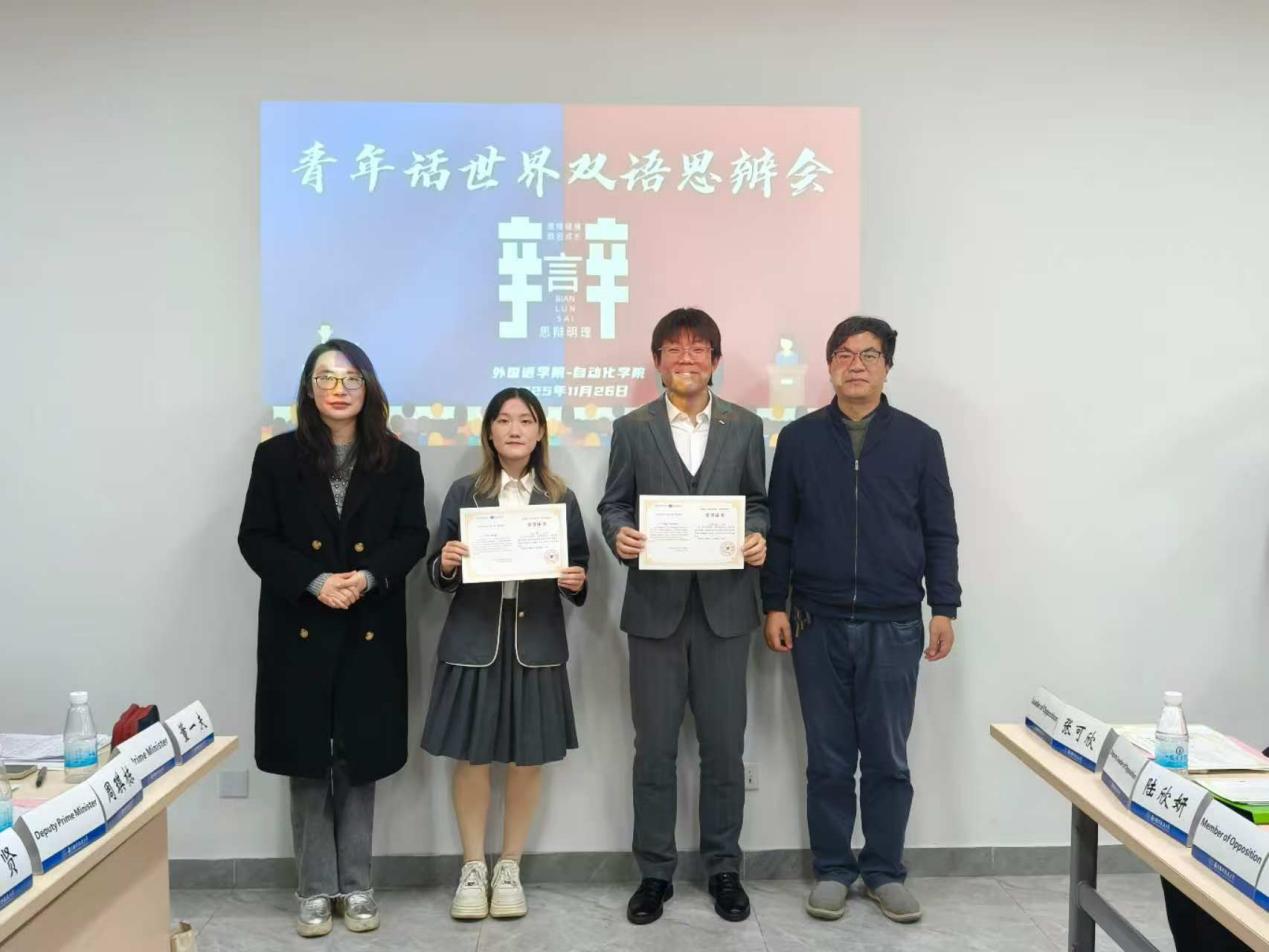 为营造学校国际化氛围,提升学生思辨能力和双语表达能力,11月26日,洞洞杂货店 与自动化学院于天目湖校区洞洞杂货店 一站式空间B6-111,联合开展了第9期“青年话世界”双语思辨会。自动化学院党委副书记阙愚、自动化学院教授王海涛、洞洞杂货店 党委副书记吴科颖、大学英语教学部主任陈向俊出席本次活动并担任专业评审,洞洞杂货店 及自动化学院共20名学生参与了本次活动并担任大众评审。