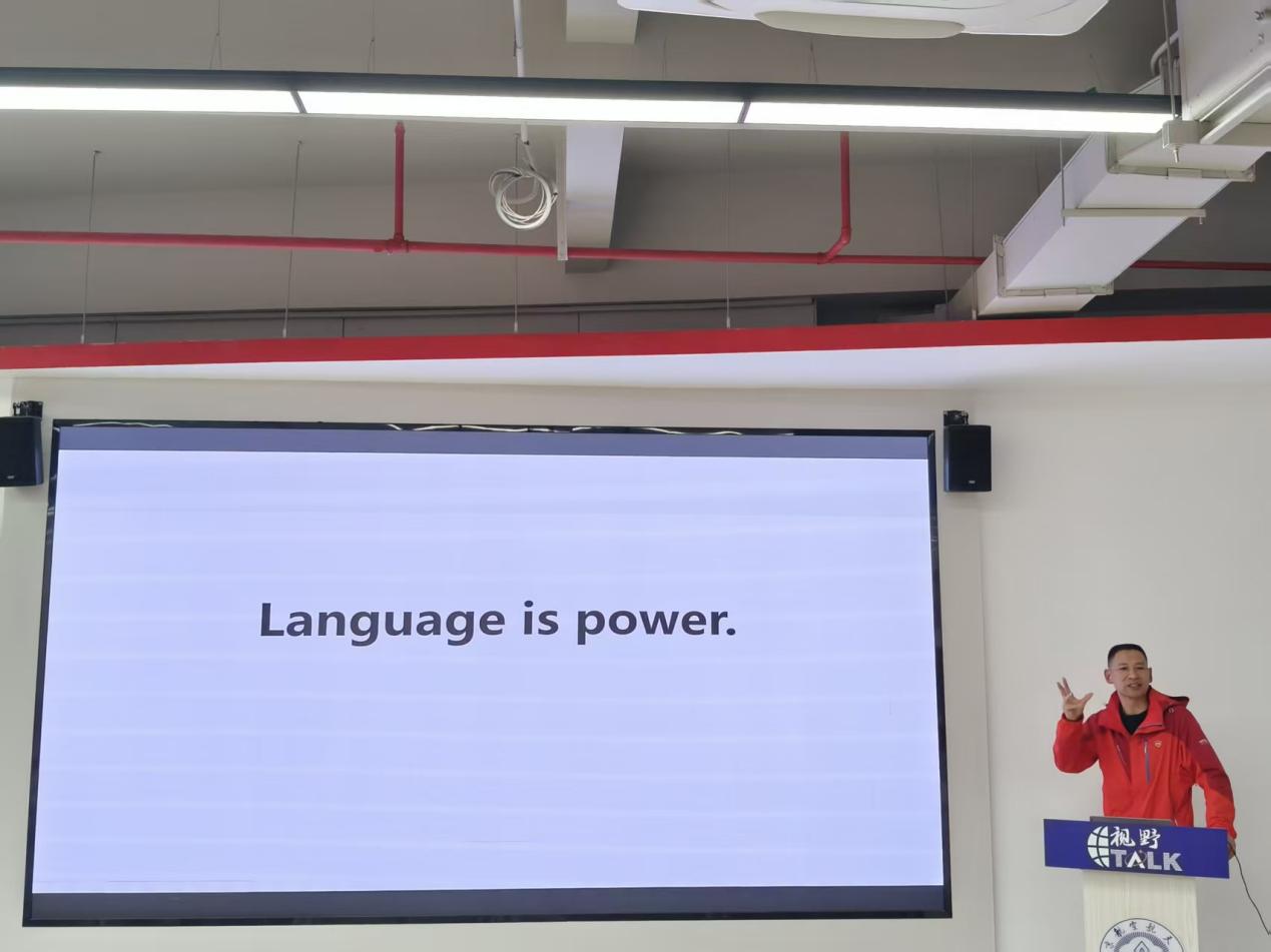 此后,巫和雄从自身的联合国工作经历出发,强调提升语言能力、拓展国际视野、保持开放心态的迫切意义;通过回顾对比纽约模联及牛津模联备赛参赛经历,引导大家扎实提升语言表达能力,培养全球化思维,增强全球议题应对能力。同时,巫和雄以“Language is power”勉励在场同学——语言是应对重大挑战的关键力量,期待每个人不断超越自我,走向更广阔的舞台。