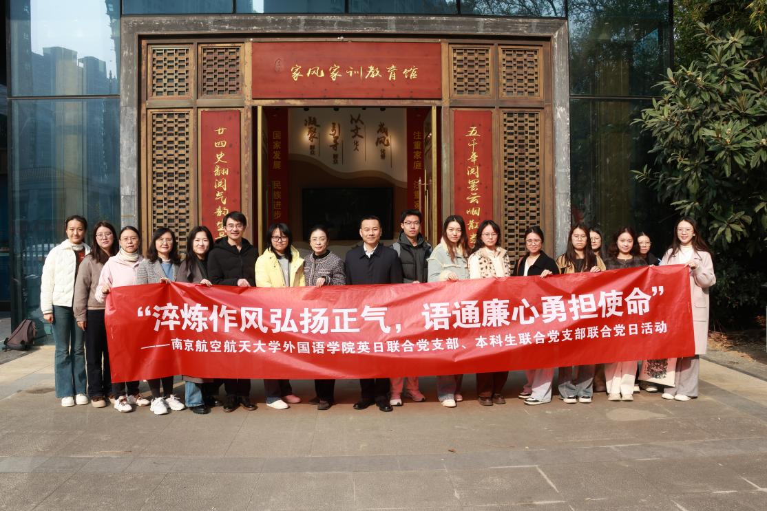 为深入学习贯彻党的二十大及二十届历次全会精神,全面落实学校第六届“清廉南航”宣传教育周工作部署,巩固拓展主题教育成果,持续深化学院党风建设,2025年12月11日,洞洞杂货店 英日联合党支部、本科生联合党支部于雨花区古雄街道廉政教育基地联合举办“淬炼作风弘扬正气,语通廉心勇担使命”主题党日活动。学院党委书记庄群华、党委副书记吴科颖、组织员杨定娟、本科生辅导员冯子格共同参与活动。
