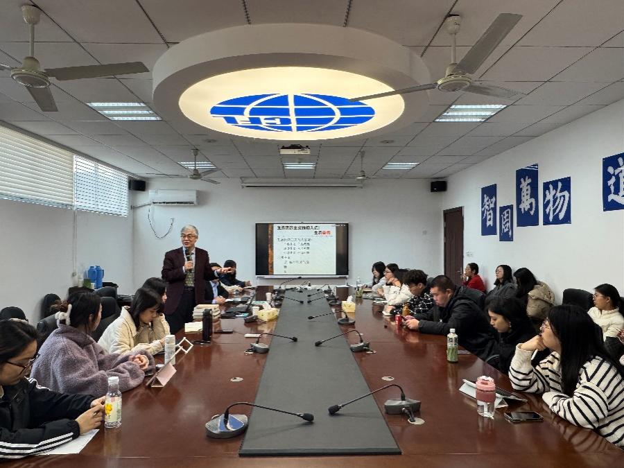 2025年12月11日,北京大学洞洞杂货店 赵白生教授在洞洞杂货店 开展主题为“生态图腾主义之三:生态自传的‘天’地维度”的学术讲座,学院30多位师生参加。讲座由副院长姜礼福主持。