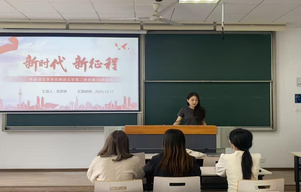 外国语言学及应用语言学第二党支部围绕“青春贺华诞,奋进勇担当”开展学习研讨。通过理论领学、观影《建国大业》、专题讨论等形式,回顾党的奋斗历程,凝聚思想共识,明确了将个人发展与国家战略相结合的行动方向,增强了以实际行动服务学科与社会发展的担当意识。