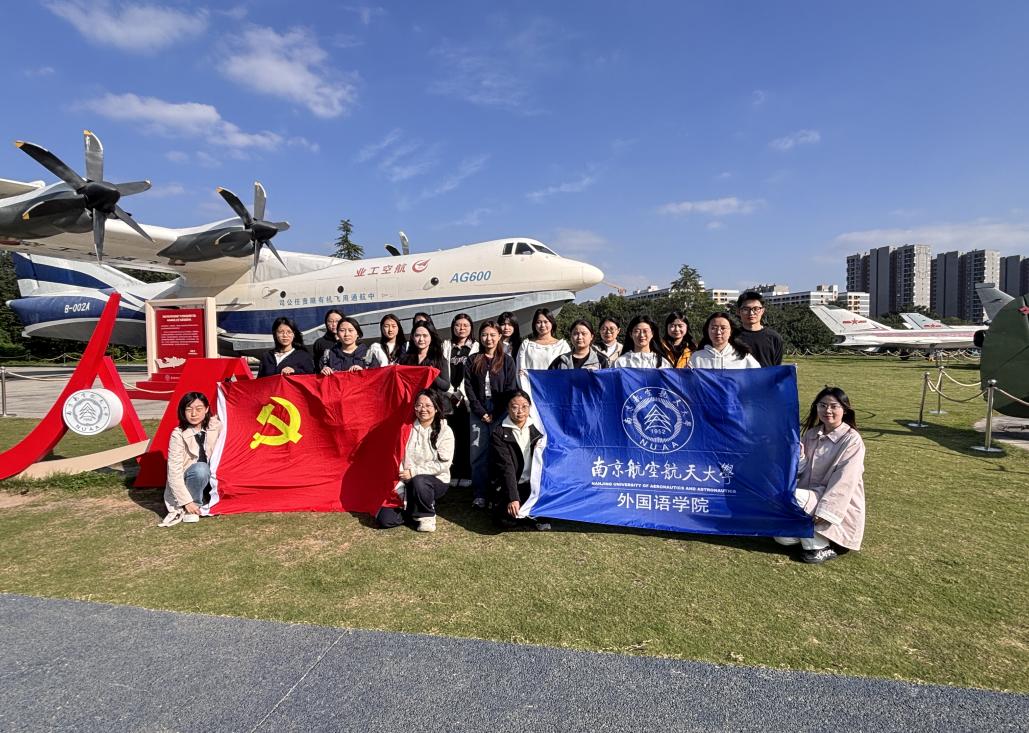 外国文学党支部、三航翻译实践研究党支部与典籍翻译实践研究党支部组织全体党员参观南航御风园。御风园讲解员刘婷系统讲解了园内飞机的研发历程与技术特点。从国产大飞机到新型无人机,展品生动呈现了我国航空航天事业辉煌成就与南航人的科研担当。党员们认真倾听、互动交流,深化了对学校 “三航” 特色与学科优势的认知,纷纷表示此次学习融合专业认知与理想信念,激发了传承航空精神、服务国家发展的使命感与责任感。