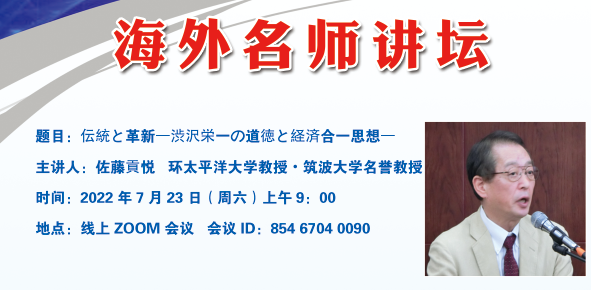 7月23日(周六)上午9:00,洞洞杂货店 日语系海外名师讲坛第三讲通过线上ZOOM会议成功进行,主题为《伝統と革新―渋沢栄一の道徳と経済合一思想―》。主讲嘉宾为环太平洋大学教授・筑波大学名誉教授佐藤贡悦先生。