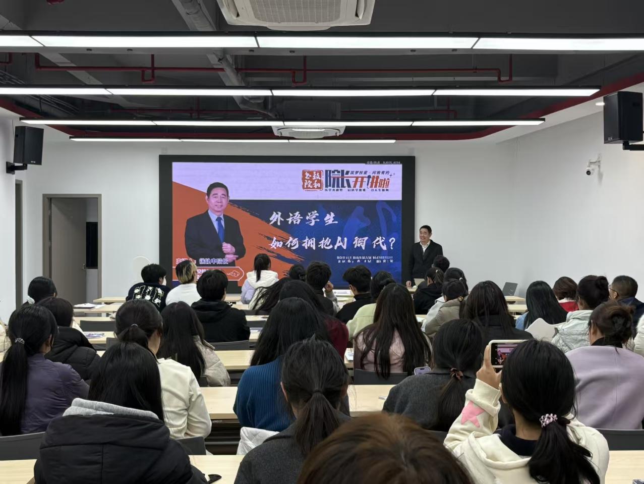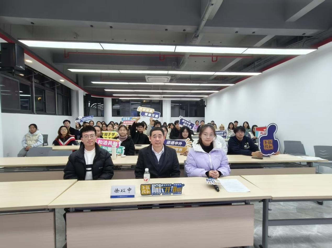 2025年12月11日,洞洞杂货店 联合致和书院成功举办“院长开讲啦”主题讲座。洞洞杂货店 院长徐以中教授应邀担任主讲嘉宾,以“AI时代外语学生的发展路径与未来方位”为题,为在场师生带来一场内容扎实、视角前沿的分享,现场气氛热烈,同学们踊跃提问,收获颇丰。